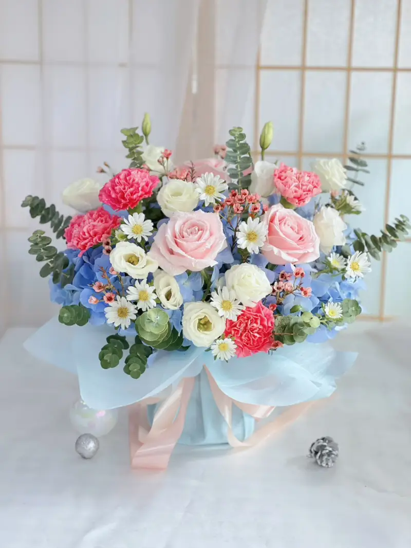 ช่อดอกไม้ชมพูฟ้าพาสเทล ( FW002)